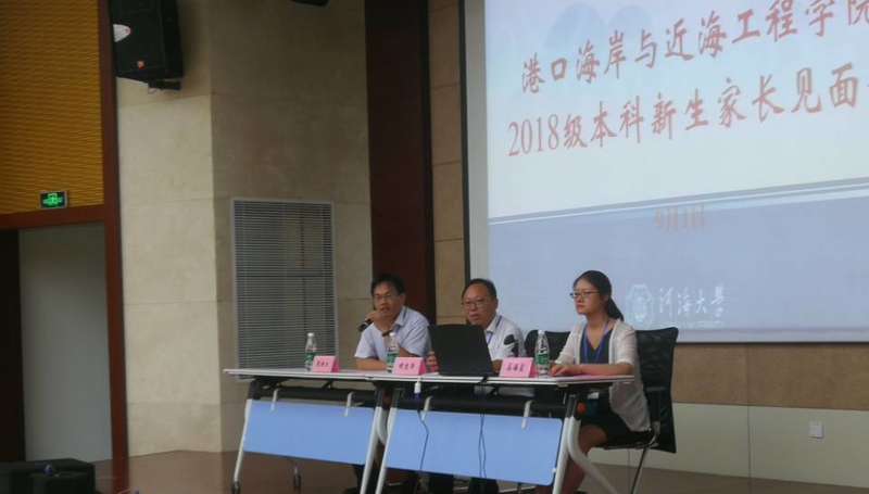 9月1日下午两点,港口海岸与近海工程学院2018级本科新生家长会在行政楼一楼大厅召开。港航学院党委书记胡忠华、副书记姜海霞、副院长张继生、团委书记王玲、2018级新生辅导员顾钰恒以及各班班导师出席了此次家长见面会。