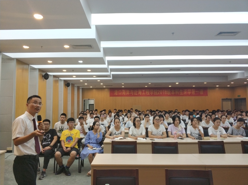 开学典礼后,龚政院长给港航院2018级全体新生讲授开学第一课。龚院长从学校悠久的历史讲述到学院光辉的历程,结合时代背景和国家战略,谈港航专业的内涵和发展,他用“舟楫之便,向海而兴”八个字强调了港航专业的意义与优势所在,他指出,无论国内还是国外,在很多重点水利工程的设计和建设中都能看到港航人的身影,同学们应以此为傲,也应为此而奋斗努力。同时,龚院长从新生的视角,深入浅出地引导新生结合专业尽早确立目标、规划大学生活,书写自己无悔的青春。新生对开学第一课兴趣浓厚,现场提出很多问题,龚院长一一答疑解惑。