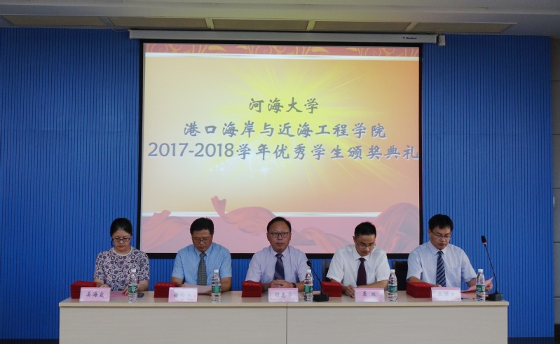 9月5日下午两点,港口海岸与近海工程学院2017-2018学年优秀学生颁奖典礼在江宁校区图书馆401召开。学院党委胡忠华书记、龚政院长、诸裕良副院长、张继生副院长、姜海霞副书记及全体辅导员出席本次典礼。