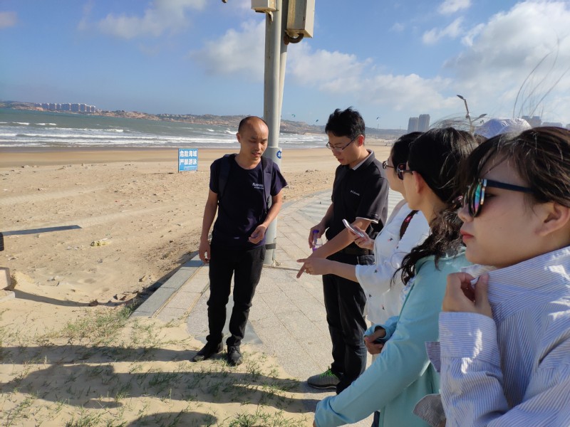 该团队首先在海岛研究中心与该中心的海岛保护处刘建辉副处长、陈淳博士等,针对现有的海岛生态减灾举措及拟开展的效益评价等方向进行了学术交流。之后选择了海坛岛周边的一直存在的良好自然生态护岸系统、遭到破坏尚未修复的海岸带现场、遭到破坏正在开展的生态修复工程现场、遭到破坏但已修复的海岸生态系统等多处海岸区域进行了现场调研。本调研有助于深入思考海岛生态减灾工作现有的问题和发展思路,有助于海岸灾害及防护教育重点实验室的业务开拓,有助于开云电竞网和海岛研究中心的进一步深化合作。