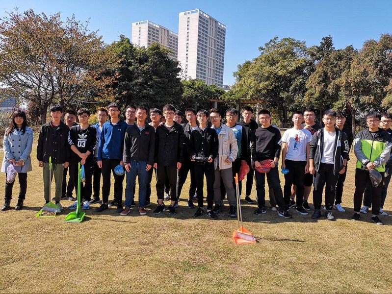 活动当天,首先由团支书邢志奇讲解了“建设美丽中国”的理念,让团员们认识到“绿水青山就是金山银山”。然后在班长王昕怡的带领下,对江宁校区叠翠山进行了整体的清洁工作,两个休憩的小亭、沿途的垃圾桶都得到了细致的清洁,散落的秋叶也被清理干净并进行了归置。志愿者们积极参与,各司其职,有徒手捡垃圾的,也有用带来的扫帚打扫的,致力于把优美的叠翠山归还给大家。