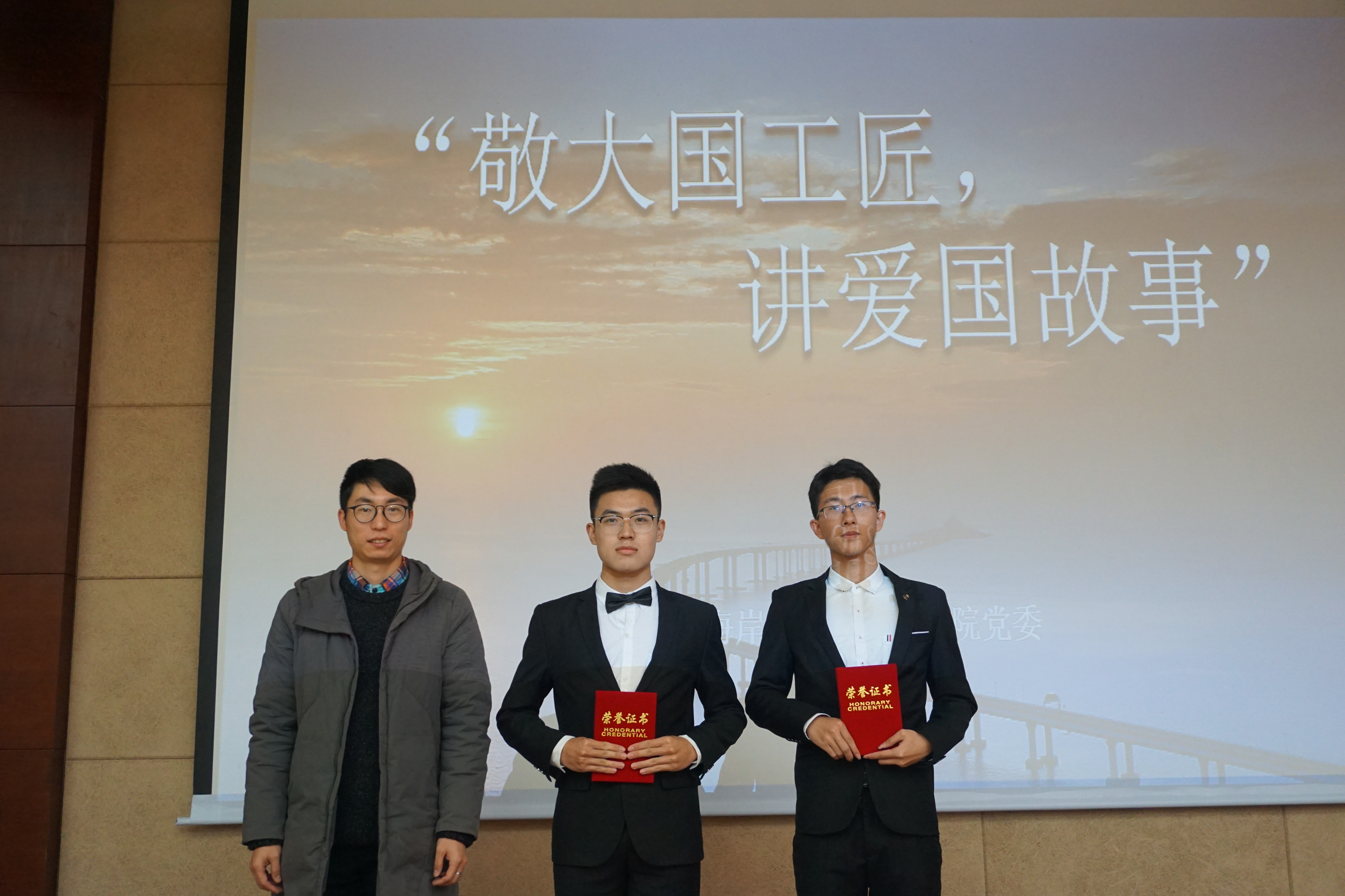 12月21日晚六点半,由学院党委主办的“敬大国工匠,讲爱国故事”主题活动在江宁校区行政楼一楼报告厅举行。此次活动邀请到党委宣传部王宁可老师、校团委陈智老师以及学院团委书记王玲老师担任评委,参赛选手们通过对河海校友参与港珠澳大桥建设的真实事迹进行改编,向大家展示了奋战港珠澳大桥建设前线的大国工匠们的奋斗精神与爱国情怀。