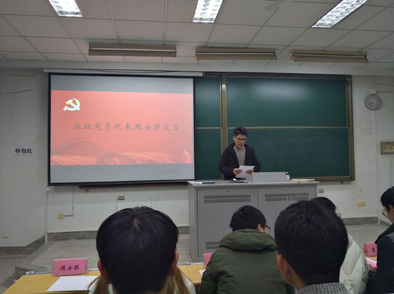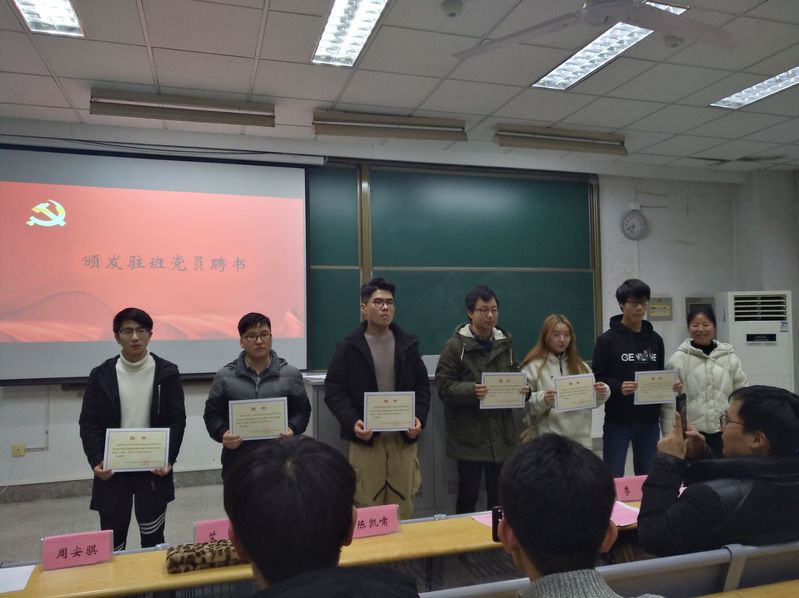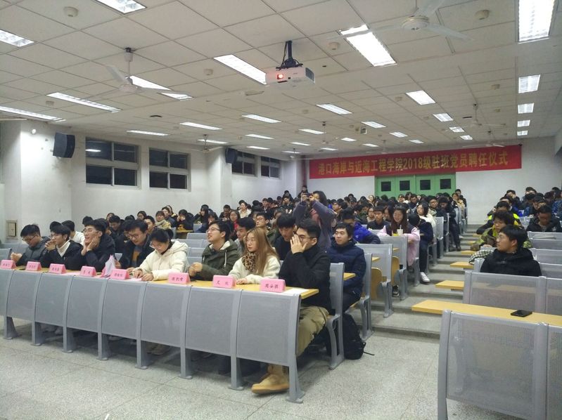 2019年1月14日晚6:30,港航院2018级驻班党员聘任仪式于江宁校区致用117教室成功举行。2018级全体学生参加,辅导员季超、张同鑫、顾钰恒老师以及万文杉、许亚飞、周安骐、陈凯啸、艾欣和王昊等6名驻班党员出席。