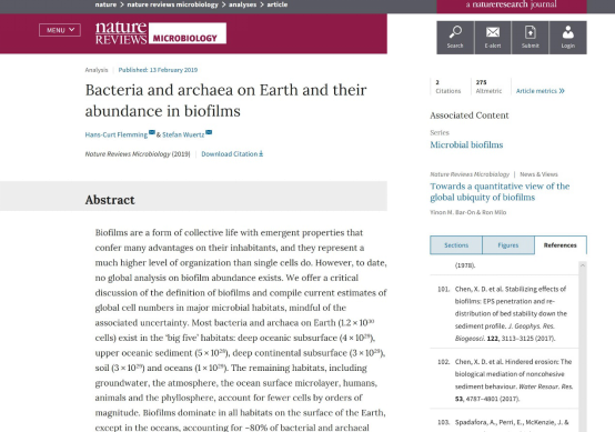 近期,我院潮滩动力地貌研究团队的两篇学术论文同时被国际顶尖学术期刊Nature旗下子刊Nature Reviews Microbiology(2017-2018最新影响因子31.851)上发表的论文“Bacteria and archaea on Earth and their abundance in biofilms”引用。该综述定量统计、总结了全球范围内菌类生物膜的分布及其在人类、海洋、陆地等生态动力环境中的重要作用。文中我院潮滩动力地貌团队2017年发表的两篇关于潮滩泥沙生物稳定性的研究成果均被引用,其分别为发表在一区期刊《Water Resources Research》上的论文“Hindered erosion: The biological mediation of noncohesive sediment behavior”和发表在二区期刊《Journal of Geophysical Research: Biogeosciences》上的论文“Stabilizing Effects of Bacterial Biofilms: EPS Penetration and Redistribution of Bed Stability Down the Sediment Profile”。论文第一作者为陈欣迪博士生,其导师是张长宽教授。论文的合作作者包括我院龚政教授、陶建峰副教授、周曾副教授、周晶晶博士以及环境学院冯骞副教授。此外,英国南安普顿大学与圣安德鲁斯大学的业内知名学者也合作参与了本项研究。