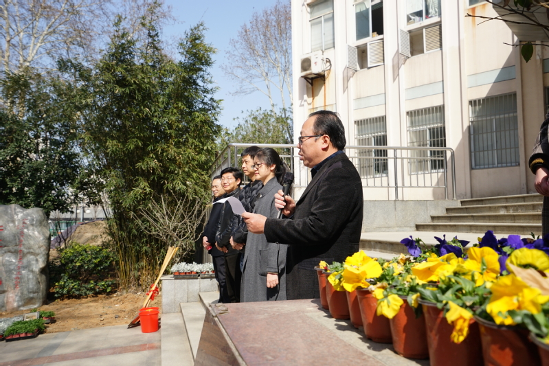 后勤处党工委康红强书记围绕植树节意义和国家生态文明建设做了主题发言。胡忠华书记就大学生德智体美劳全面发展,做了如何开展美育、劳育的讲话,并对“望归圃”的深切含义进行了讲解。其后,园林公司技术负责人为在场师生作了种植培训。主持人对参加活动师生进行了分组,由各后勤处教师分别带领一组学生参加植树活动。