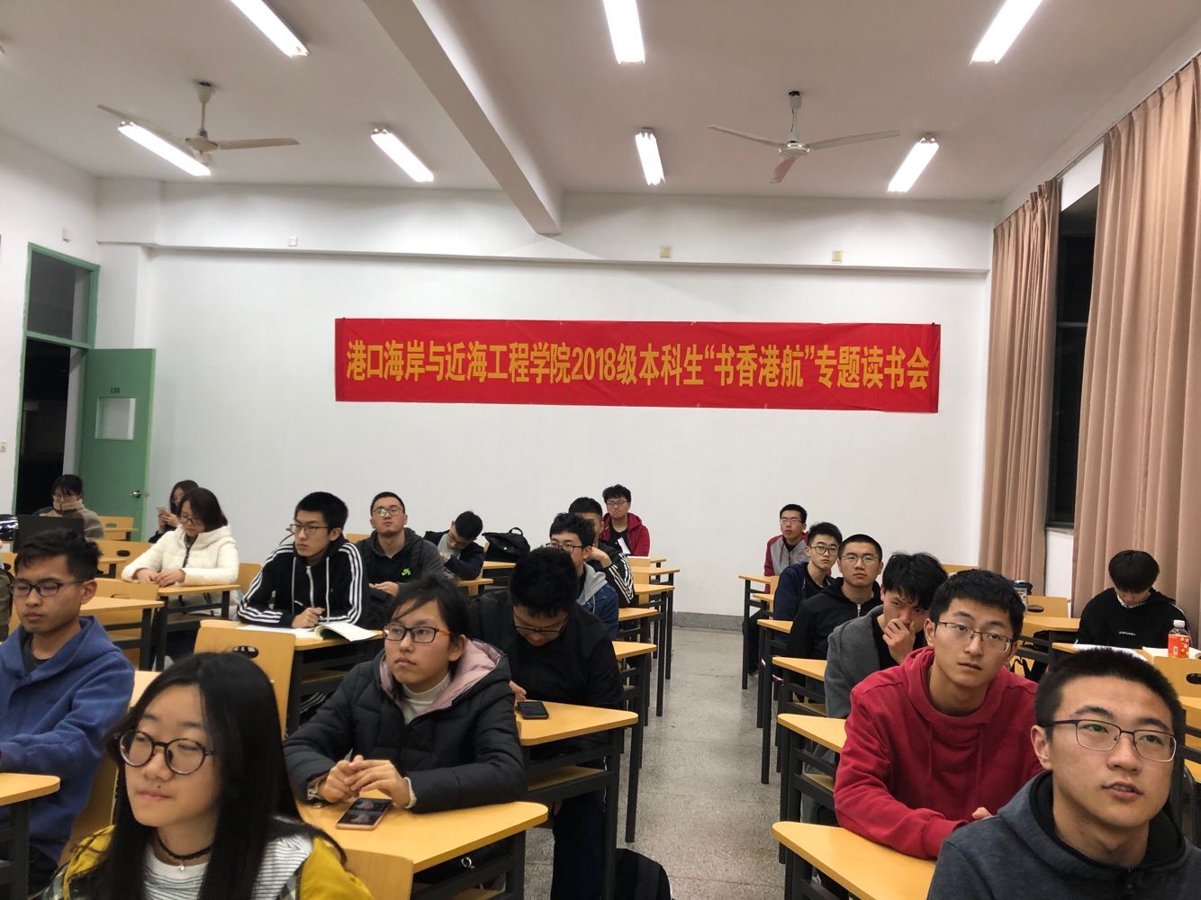 2019年3月19日18:30,港口海岸与近海工程学院2018级“书香港航”读书分享会于江宁校区致用楼126教室顺利举办。港航学院2018级24位同学分享了读物,2018级辅导员顾钰恒老师到场。