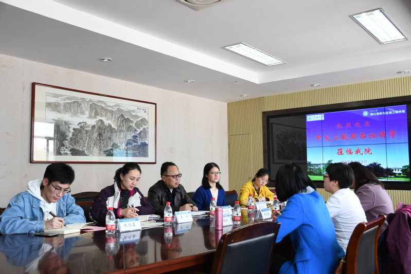 2019年4月3日下午,中交第三航务工程局有限公司人力资源部高级主管费佳颖、第三工程有限公司人力资源部经理梁艳娇、副经理王珍一行3人到我院开展调研,双方就校企合作、校园招聘、人才培养等方面的工作进行座谈交流。学院胡忠华书记、姜海霞副书记、王玲老师、季超老师、顾钰恒老师、张同鑫老师参加了座谈。