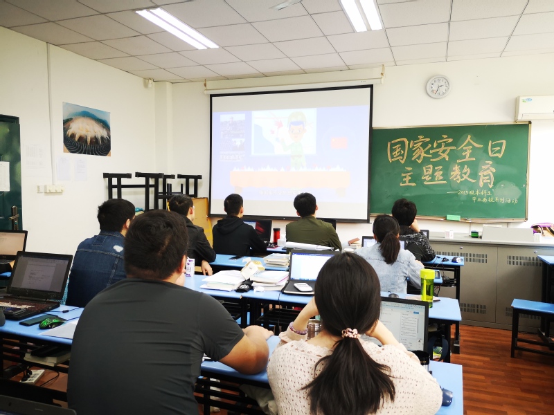 为进一步宣传和学习有关国家安全的法律法规,在国家安全日前后,学院分别动员2015级本科毕业生召开安全教育主题班会,组织201620172018级本科生集中进行“国家安全日”主题教育,安排机关全体教师以及研究生、本科生代表集体学习央视“社会与法”频道《平安365》栏目特别节目《间谍罪名的背后》。
