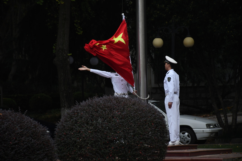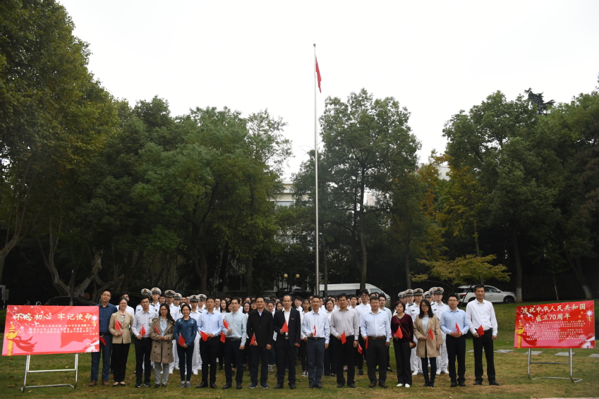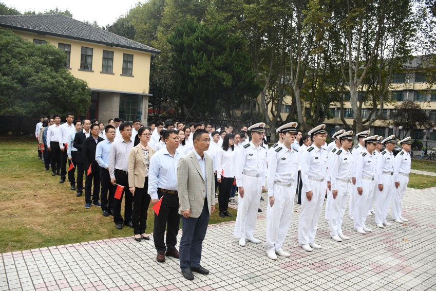 2019年10月14日早上7点20分,开云电竞网港航院在本部工程馆前举行“不忘初心、牢记使命”主题升旗仪式。仪式由学院党委姜海霞副书记主持,参加本次升旗仪式的有学院领导班子成员、海工所全体教师党员、全体教工党支部书记、教师党员代表、学生党员代表以及2016级全体国防生。