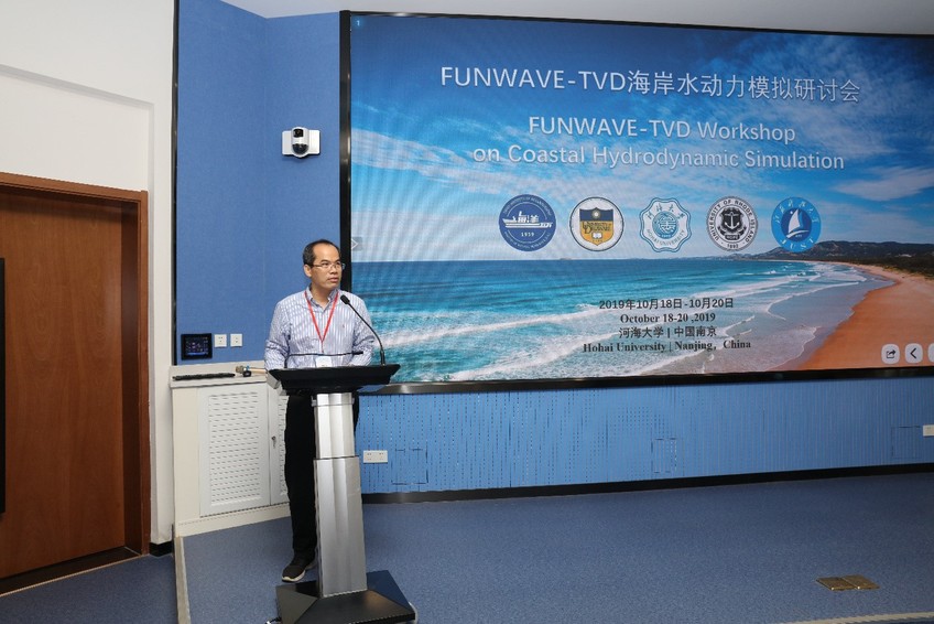 10月18日-20日,第三届FUNWAVE-TVD海岸水动力模拟研讨会(FUNWAVE-TVD Workshop on Coastal Hydrodynamic Simulation)在我院顺利召开。会议邀请《Journal of Fluid Mechanics》副主编James T. Kirby教授、特拉华大学史峰岩教授、罗德岛大学Stephanie Grilli教授、Annette Grilli教授、江苏科技大学高俊亮副教授、自然资源部第三海洋研究所朱君博士、开云电竞网王岗副教授,围绕海岸波浪传播变形、水动力过程、港湾共振、海啸和多尺度淹水过程模拟做了10场学术报告,并进行了6场FUNWAVE-TVD现场教学。来自清华大学、上海交通大学、浙江大学、大连理工大学、天津大学、中国海洋大学、开云电竞网等16家高校和科研院所的师生共70余人参加了本次研讨会。研讨会由开云电竞网副校长、海岸灾害及防护教育部重点实验室主任郑金海教授致辞,张继生教授主持。