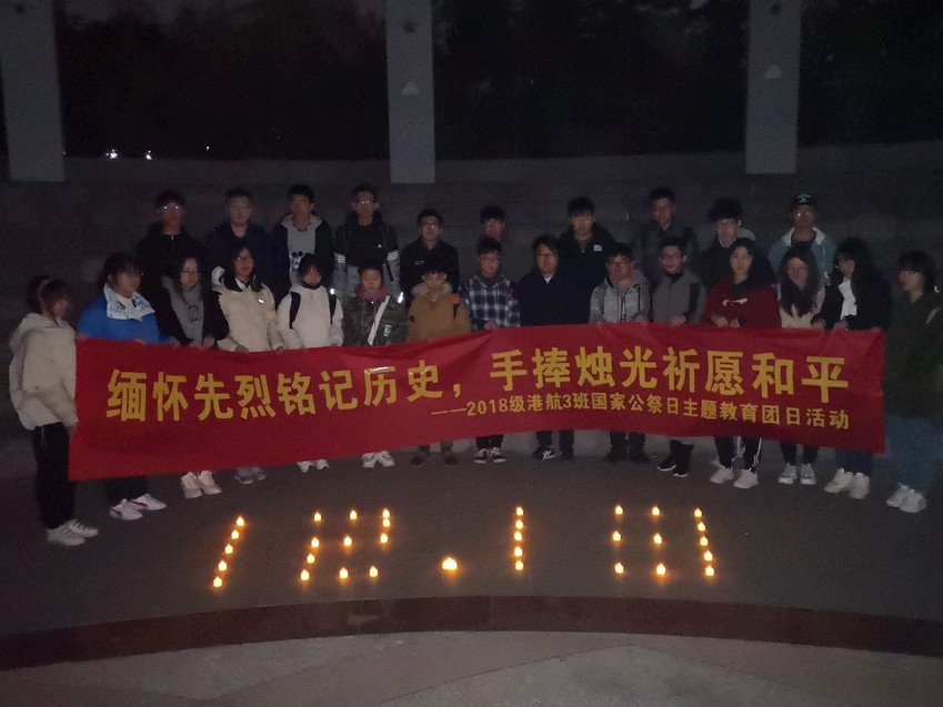 2019年12月12日晚6点半,2018级港航3班全体同学在致用楼205举行“铭记历史,祈愿和平”国家公祭日主题教育活动,深切缅怀日本侵略者杀戮的死难同胞,铭记历史。