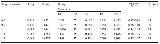 Table 1 Dimensions of tanks with different mass ratios and frequency ratios