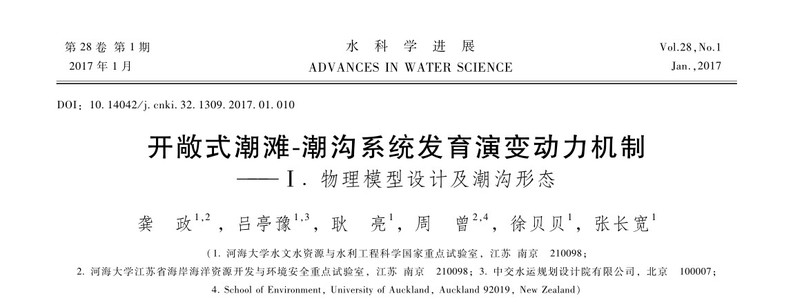 近年来,龚政教授团队针对开敞式潮滩-潮沟系统发育演变动力机制综合了现场观测、数值模拟、物理模型等多种技术手段,开展了系列研究。本次入选的优秀论文是龚政教授团队在《水科学进展》连续发表的3篇姊妹篇论文中的一篇,其他两篇分别探讨了潮沟系统形态特征和潮汐动力作用。潮滩-潮沟系列论文的发表推动了对这一地貌系统演变规律的系统性认识,对相关学科领域发展具有重要意义。