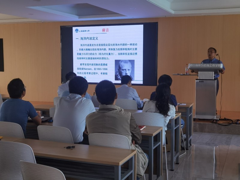 张洪生教授作了题为“两种表面边界条件下分层海洋中内波传播的数值模拟”的学术报告,报告详细介绍了南中国海海域内波的特征与影响、自由水面和刚盖假定两种水面边界条件下的内波在空间传播特征与动力特性方面的对比分析。会后,张洪生教授和与会师生就南中国海内波的相关问题展开了热烈的讨论与交流。该报告会是我院海岸灾害及防护教育部重点实验室河口海岸保护利用系列特邀学术报告会系列报告,对我院在海岸与海洋工程防灾以及水波动力学方面的学科发展起到了良好的推进作用。