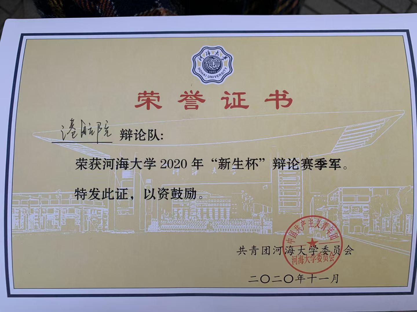 港航院辩论队辩论赛季军荣誉证书