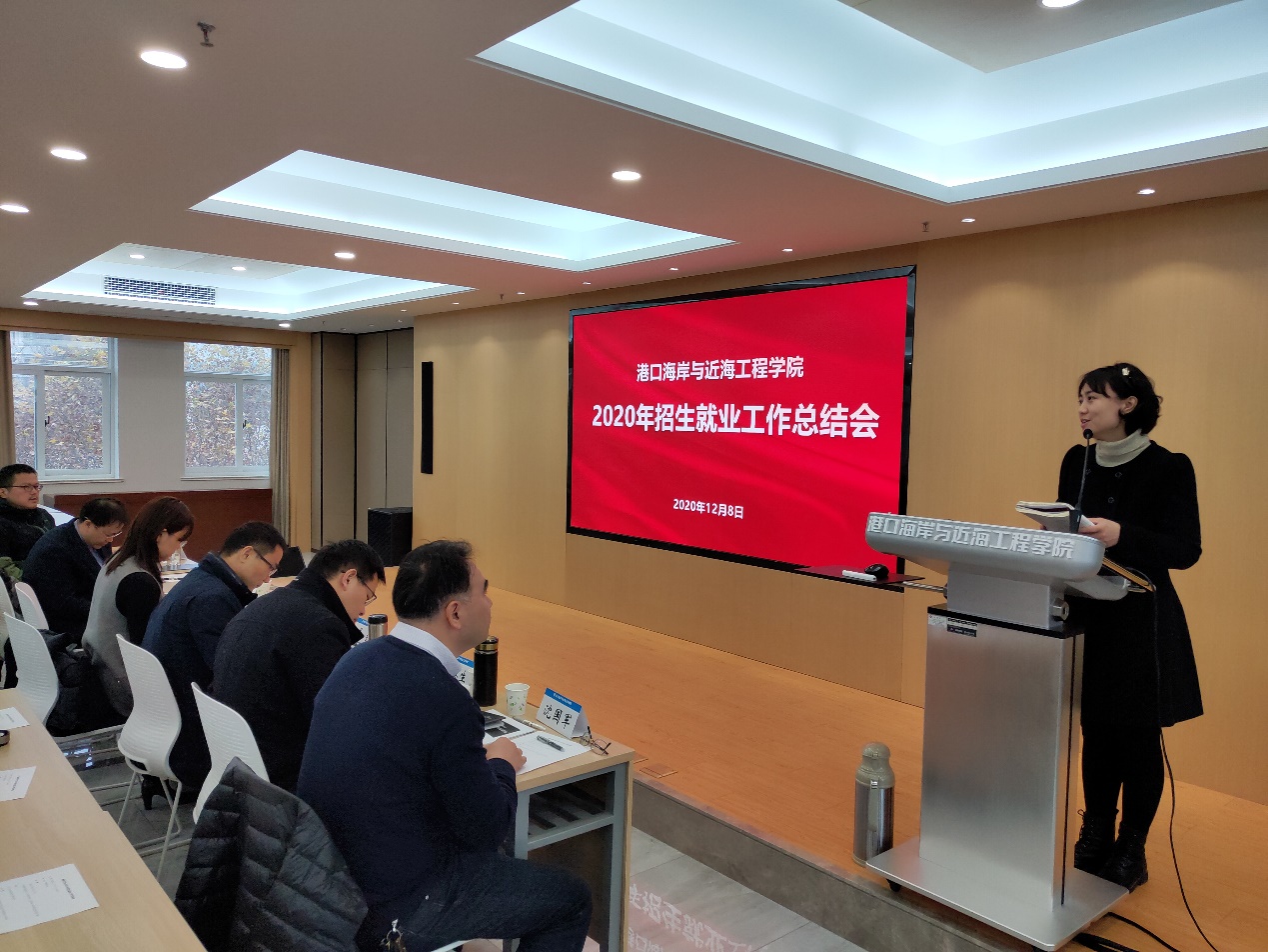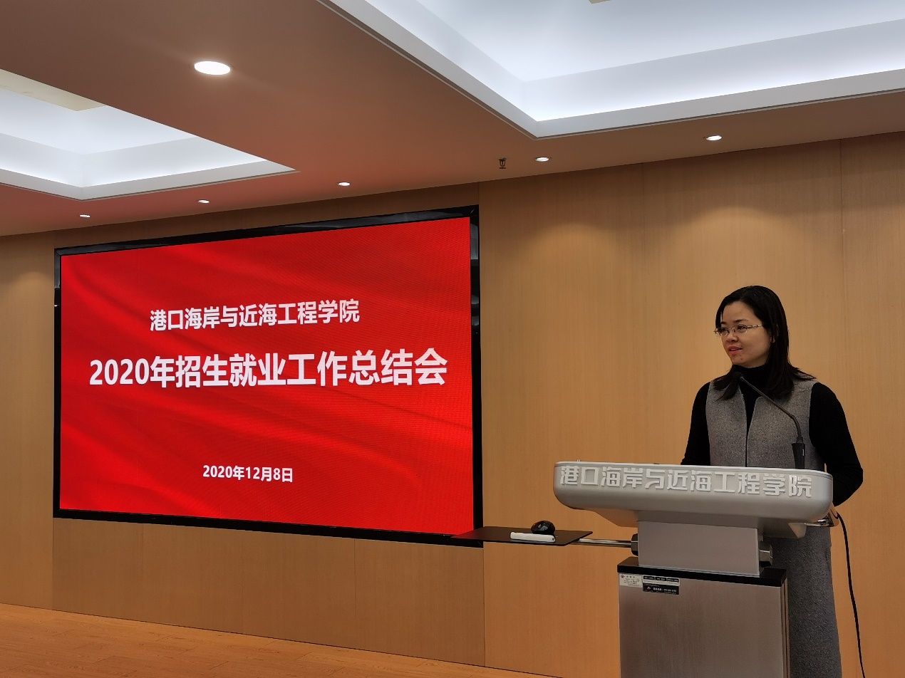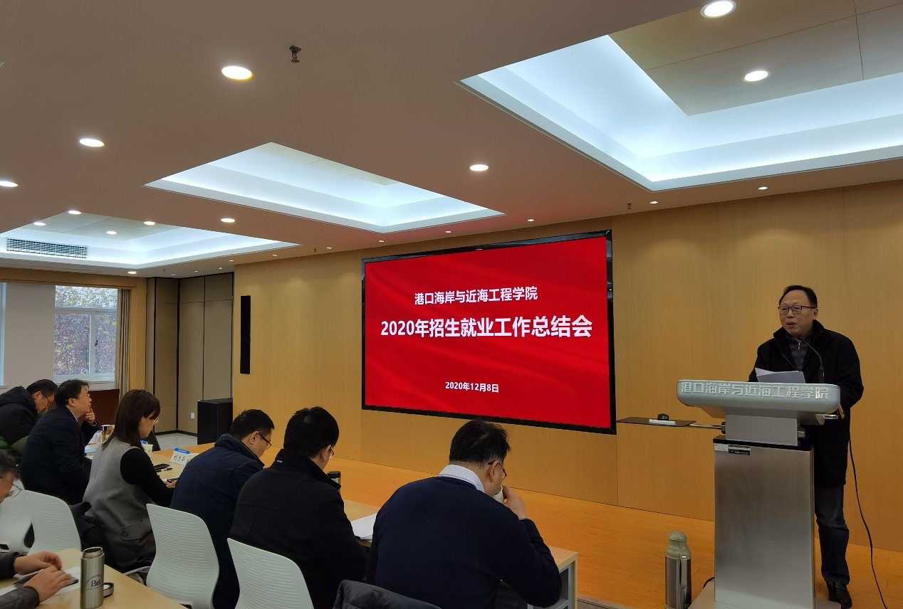 12月8日,港航学院召开2020年招生就业工作总结会,学生工作处处长吴红、院领导班子成员、系所负责人、班导师、招生宣传教师以及辅导员参加会议,会议由院党委书记胡忠华主持。