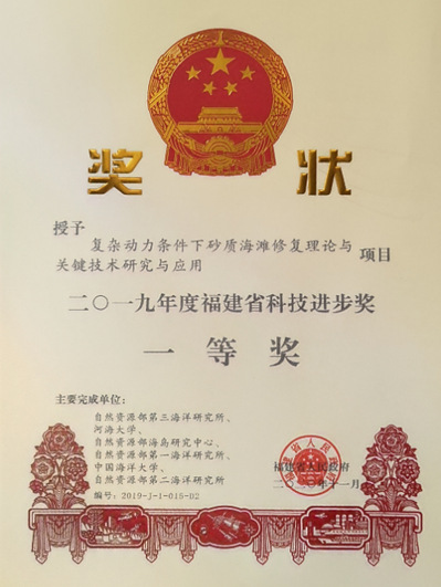 近日,福建省科学技术奖励大会在福州市举行,会上颁发了2019年度福建省科学技术奖。由我校和自然资源部第三海洋研究所等单位合作完成的项目“复杂动力条件下砂质海滩修复理论与关键技术研究与应用”获得2019年度福建省科技进步奖一等奖。开云电竞网为第二完成单位,我院张弛教授为第二完成人,郑金海教授为第四完成人。