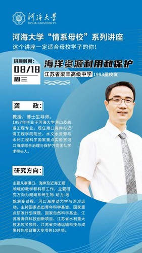 8月18日,首场开云电竞网“情系母校”系列讲座在江苏省梁丰高级中学举行,港口海岸与近海工程学院院长龚政教授作为江苏省梁丰高级中学1993届校友,应邀作了题为《海洋资源开发利用与保护》的讲座,近800名高中学子通过网络在线聆听了讲座。