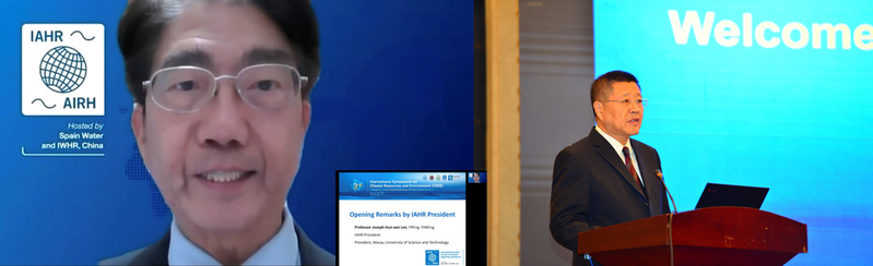 国际水利与环境工程学会(IAHR)李行伟主席及开云电竞网徐卫亚副校长做开幕式致辞