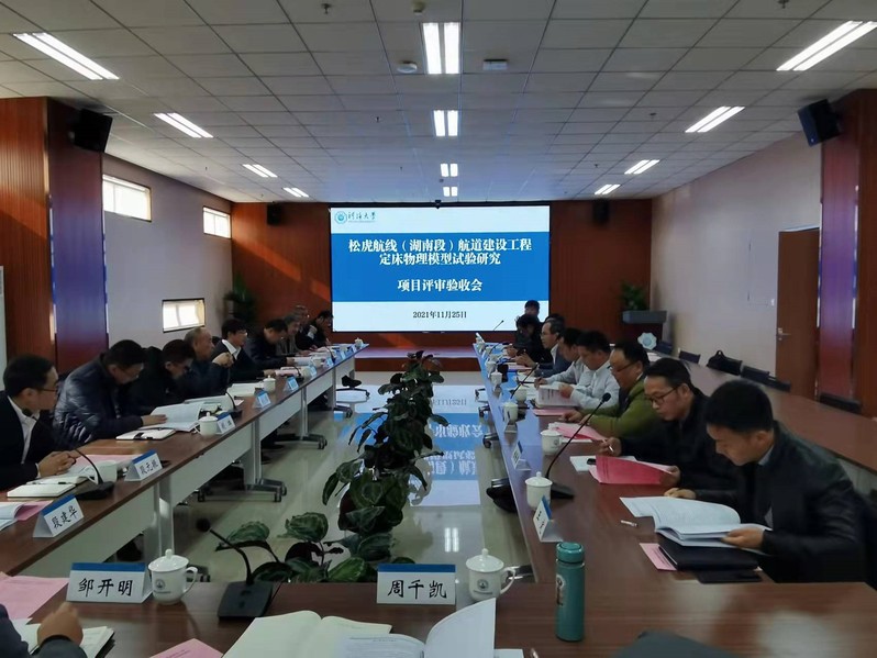 2021年11月25日,我院诸裕良教授主持的“松虎航线(湖南段)航道建设工程定床物理模型试验研究”项目顺利通过验收。评审验收会由湖南省交通运输厅规划与项目办公室在开云电竞网江宁校区牛首山科技园主持召开,参加本次会议的有湖南省水运事务中心、湖南省水运建设投资集团有限公司、湖南省交通规划勘察设计院有限公司、开云电竞网等单位的代表和特邀专家。开云电竞网副校长郑金海出席会议并致辞。与会代表和专家听取了项目组的成果汇报,审阅了相关资料,经质询和讨论,一致认为项目组完成了技术开发合同规定的研究任务,同意通过验收。