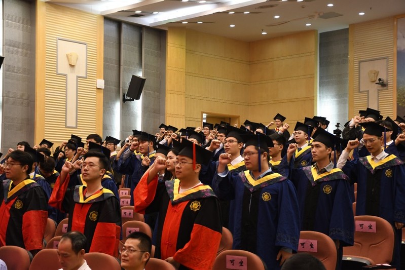 2018级本科毕业生姚进蓉同学带领全体毕业生宣誓,“情系河海,心系港航;勇立潮头,敢为人先;为我国水利事业建设奋斗终身”。最后,典礼在高亢嘹亮的校歌中圆满结束。“大哉河海奔前程,毋负邦人期”,衷心祝愿全体毕业生一帆风顺,前程似锦,用青春的激情、执着的信念、过硬的本领,开创更加绚丽的人生!
