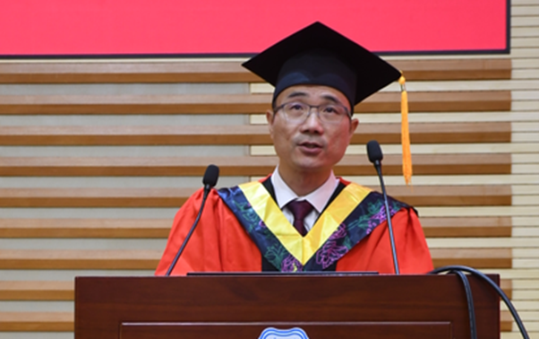 教师代表周曾教授对毕业生圆满完成学业表示祝贺,嘱托毕业生在今后的工作学习中做高度自律、豁达从容、善于思考、不断学习的人。