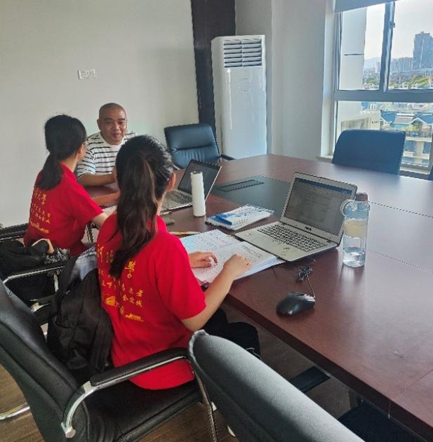 实践团与中交广航局的河海校友进行集中访谈和三对一专访,参与访谈的有2006届校友孟江山、2009届校友李翔、2017届校友江志微,三位河海校友从工作经验、行业就业形势、海外发展等方面为实践团答疑解惑,使学生成长发展、未来就业规划有了更加清晰的方向。