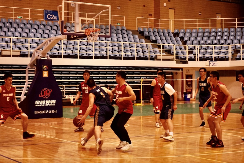 易边再战,学生队23号黄伟然突破重围,强硬对抗,接连打进三球,缩小比分差距。教工队凭借巧妙的战术配合,在1号郑金海的指挥下,4号彭伟多次跑出空位,1号郑金海弧顶发牌,4号彭伟底线中投打进。第三节比分定格在49:28,教工队大比分领先。