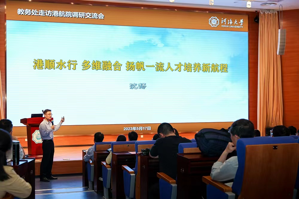 5月17日,教务处来我院开展调研交流活动。副校长、港口航道与海岸工程专业负责人郑金海,教务处处长沈扬、副处长吴志勇,我院党委书记张俊基,院长龚政,副院长张继生、张蔚、陈永平,副书记沈国军出席活动,学院全体教师及教务处各科室代表参加活动。活动特别邀请国家教学名师、国家级一流课程负责人中国海洋大学史宏达教授作课程建设案例分享。交流活动由我院副院长张蔚主持。