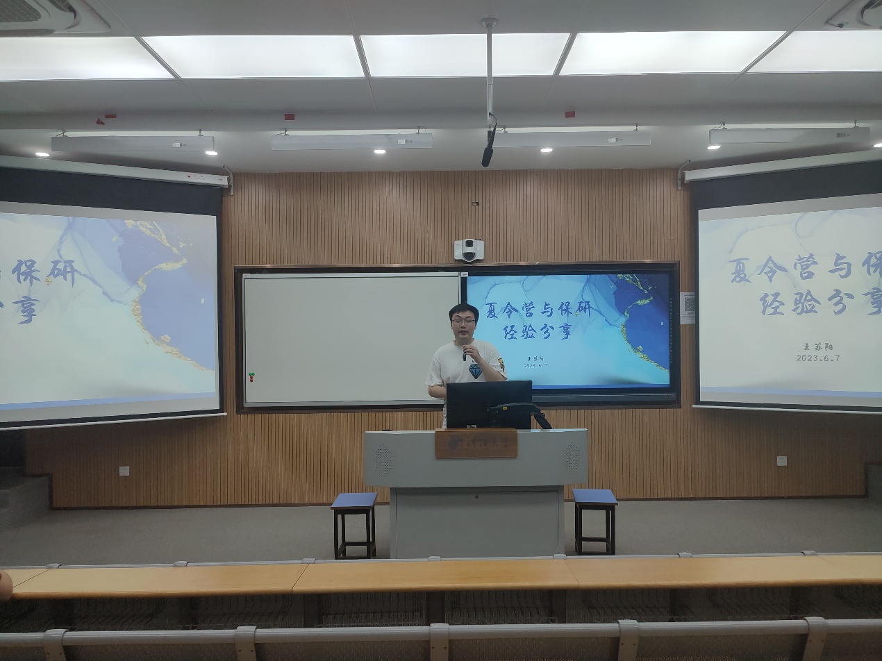 王苏阳首先为同学们介绍了往届的夏令营和保研流程,详细分享了夏令营的准备工作,讲述了自己在准备保研过程中的经验,讲解了如何利用好保研后的大四时间,为适应研究生生活和云开电竞app下载地址孵化做好准备。