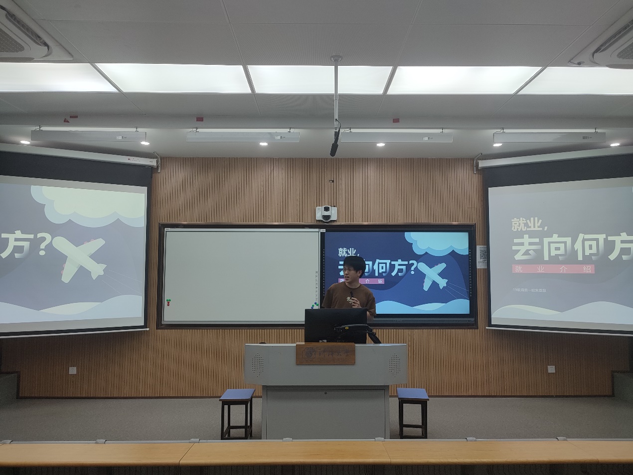 2023年6月7日,港航院在水利馆101面向2020级本科生召开升学就业经验分享会,邀请到2022级港口、海岸及近海工程专业硕士研究生王苏阳、2019级港口航道与海岸工程专业本科生陈松、赵柱巍、2019级海洋资源开发技术专业本科生朱亚权围绕保研、考研、就业等主题为同学们分享经验,学院2020级辅导员林晨主持。
