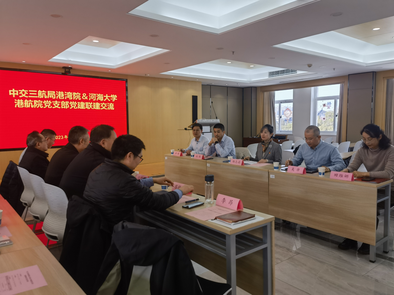 为深入学习贯彻党的二十大精神,进一步加强基层党组织建设,深化校企合作,打通产学研融合“最后一公里”,共同促进人才教育培养、精准就业、企业高质量发展,2023年11月13日,港航院水运工程科学研究所、港航物流与绿色发展研究所党支部与工程CAD图学研究所党支部邀请中交三航局港湾院总部党支部及设计党支部前来我校西康路校区,以“优势互补谋发展 比邻党建促提升”为主题,合力开展党建联建交流活动。