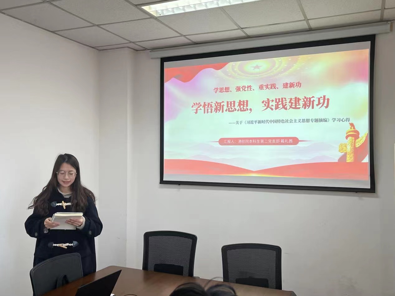 本次活动为港航院本科生第二党支部与发规处党支部联学共建“四个一”系列党日活动中“共读一本书”主题党日活动,共同学习《习近平新时代中国特色社会主义思想专题摘编》,推动主题教育走深走实,活动由开云电竞网发规处李丽洁老师主持。