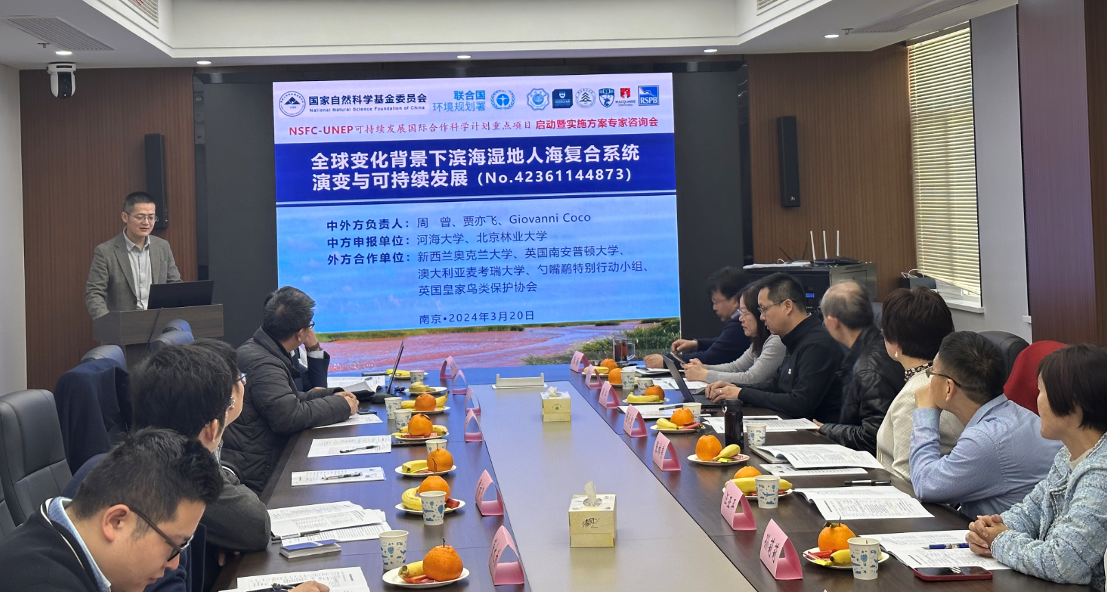 2024年3月20日,我院周曾教授作为项目负责人的国家自然科学基金委员会-联合国环境规划署(NSFC-UNEP)可持续发展国际合作科学计划重点项目“全球变化背景下滨海湿地人海复合系统演变与可持续发展(项目批准号:4236114487)”项目启动会在南京顺利召开。