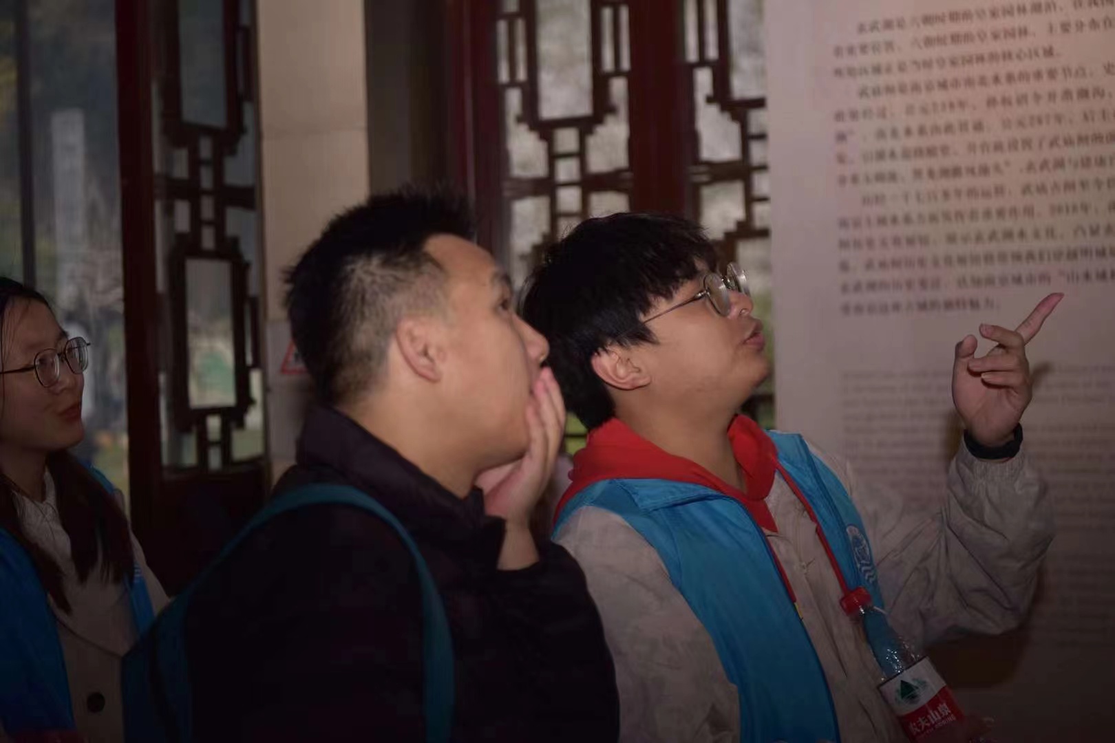 行程中,他们来到玄武湖湖史馆,馆中的每一个台阶、每一段斜坡志愿者们都格外关注。在这里,志愿者们化身“讲师”,用自己的眼睛,将馆内冰冷的物件与文字转化成一幅幅生动的历史图景,展现在视障朋友们的心间,大家在欢声笑语中学习到不少历史知识。