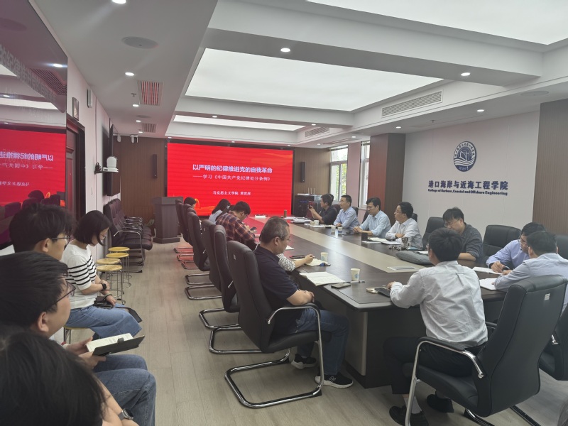 近期港口海岸与近海工程学院党委按照学校党纪学习教育工作安排,举办了党纪学习教育读书班,开展集体学习3次,学院领导班子成员全体参加了读书班学习;邀请学校党纪学习教育宣讲团成员、马克思主义学院党委书记黄世虎教授来院开展专家导学,领导班子全体成员、全体党支部书记、师生党员代表参加了学习。