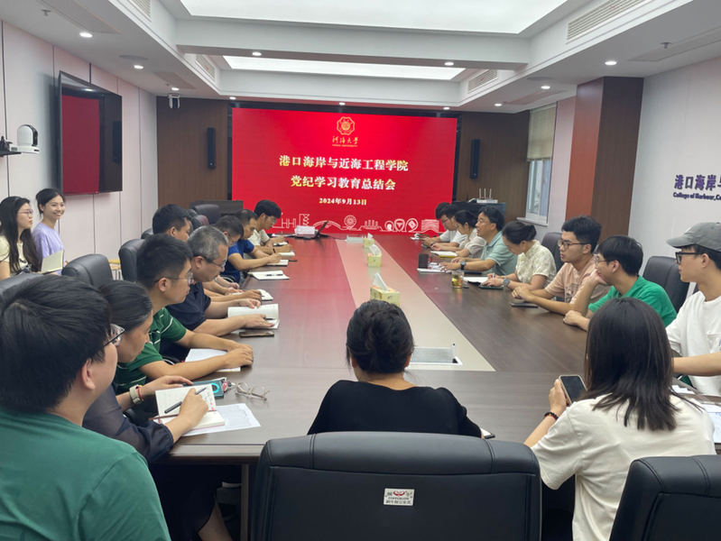 9月13日,港口海岸与近海工程学院党委召开党纪学习教育总结会,传达学习习近平总书记重要指示和学校党纪学习教育总结会有关部署要求,全面总结学院党纪学习教育情况,并对进一步巩固深化党纪学习教育成果进行部署。学院党委书记张雪刚主持会议并作党纪学习教育情况总结,学院党委副书记王玲,师生党支部书记,办公室党支部全体党员及师生代表参加会议。