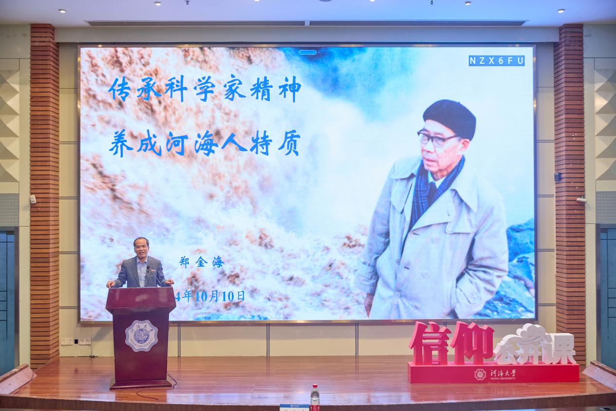 为弘扬科学家精神,强化学生爱国爱水爱校情怀,10月10日,港航院在江宁会议中心二楼报告厅开设信仰公开课,特邀副校长郑金海教授围绕科学家精神作专题报告,港航院2024级全体新生现场聆听报告,报告会由学院党委副书记王玲主持。