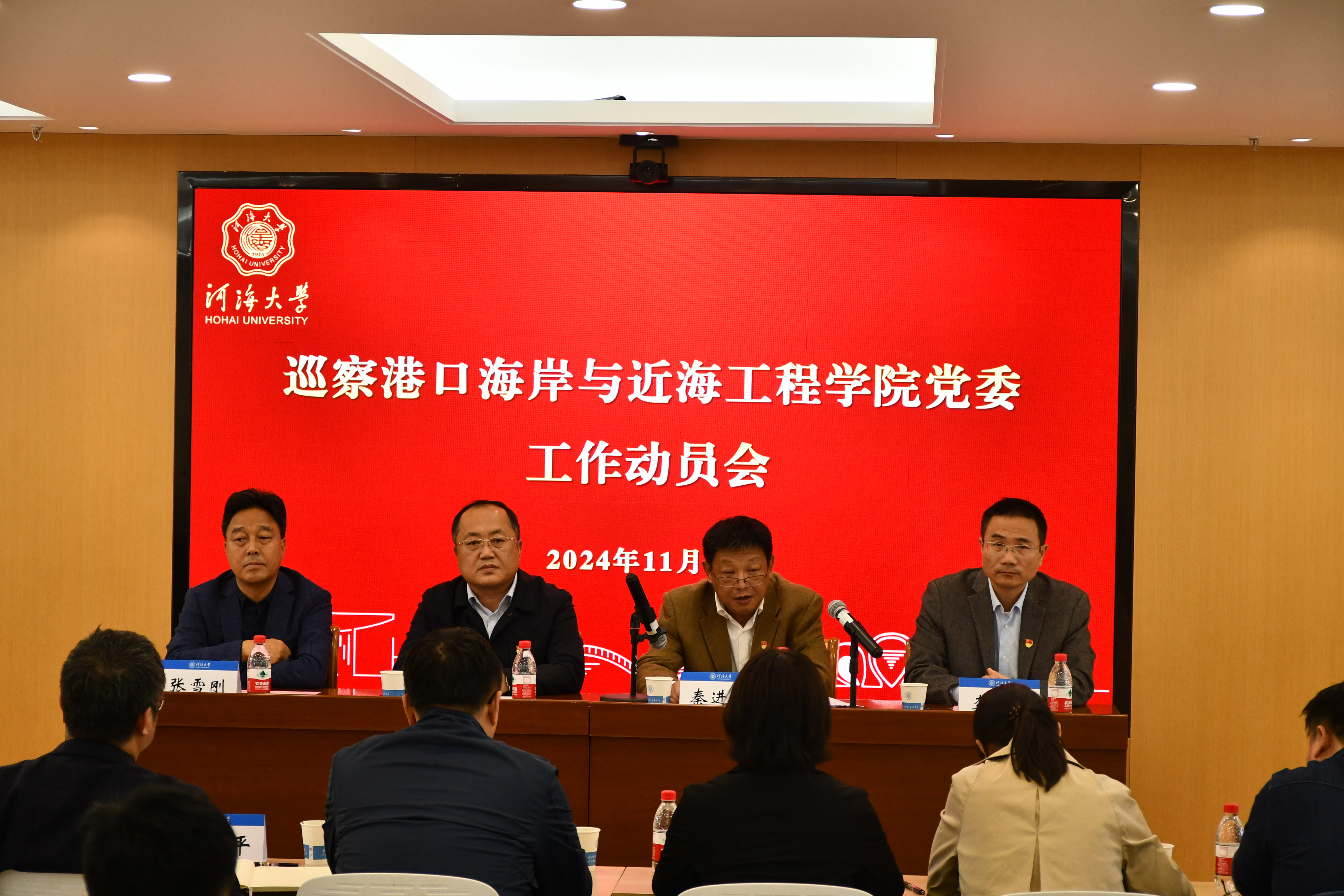 按照校党委巡察统一部署,2024年11月11日下午,校党委巡察港口海岸与近海工程学院党委工作动员会召开。 校党委巡察工作办公室主任曹继平,巡察组组长秦进东、副组长蒋菊、鲁扬,巡察组成员吴昊、乔洁琼、陈耕、赵倩、樊悦、刘彩英出席会议。会议由龚政院长主持,学院领导班子成员、党委委员、教工党支部书记、系所负责人、学术分委员会委员、教师和学生代表参加了会议。