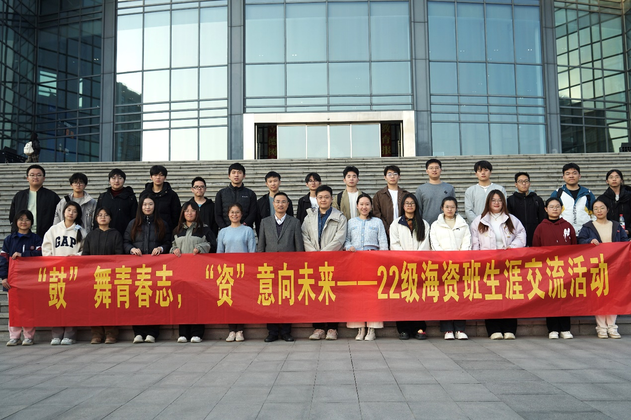 12月2日下午,22 级海资班 “‘鼓’舞青春志,‘资’意向未来”生涯交流活动在江宁校区图书馆前顺利举行。学院院长龚政、海岸带资源与环境系副主任张茜、22级海资班班导师耿亮及相关辅导员参加活动。