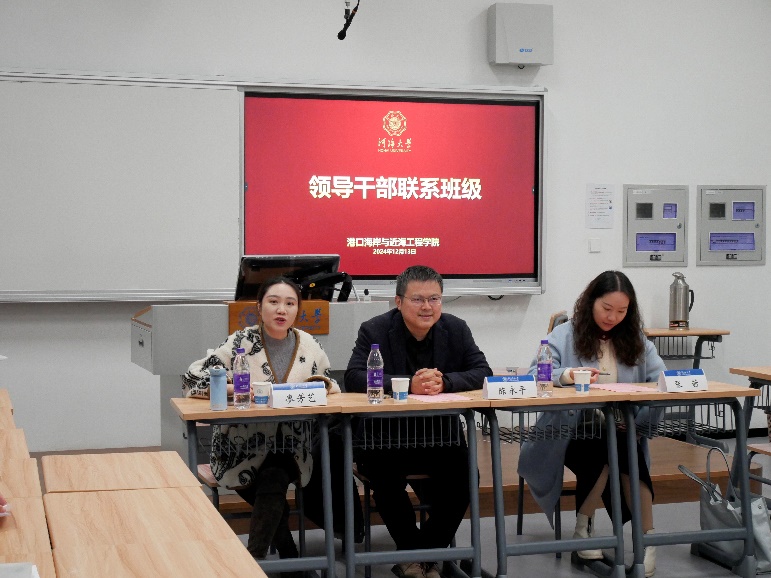 12月13日下午,我院组织领导干部联系班级座谈会,学院副院长陈永平、班导师张茜、辅导员廖芳艺、23级海资1班、港航3班、船海1班全体同学参加本次会议。