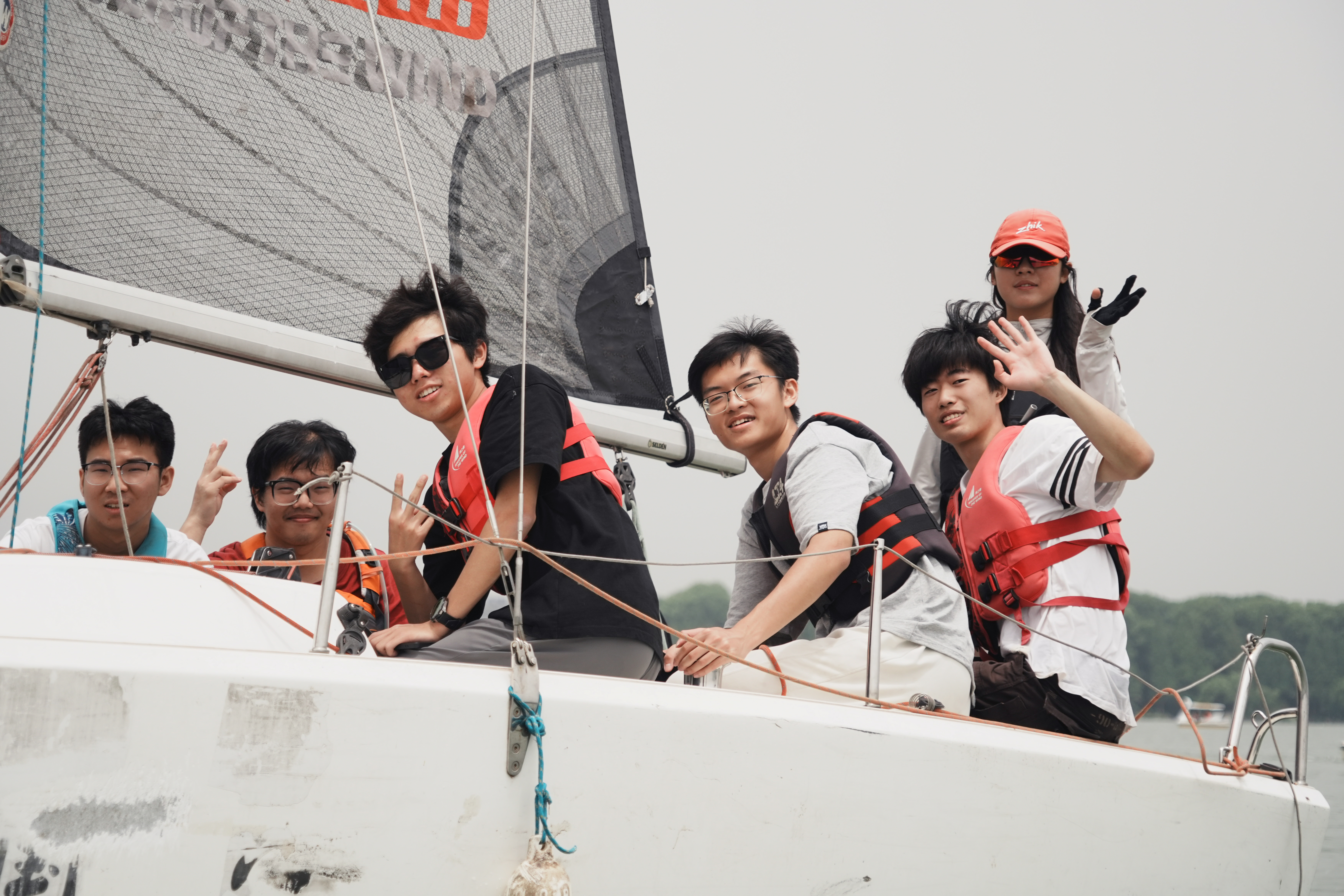 在体验帆船航行中,教练引导同学们使用绳子对帆进行控制,在转向时替换两侧的帆绳以能控制方向,并且教练利用娴熟的技能带领同学们进行压弯操作,为本就有趣的航行增添欢乐与刺激。同学们在湖风吹拂中,感受扬帆启航的动力与冲劲,坚定了把握机遇、勇担重任、不懈奋斗的精神。