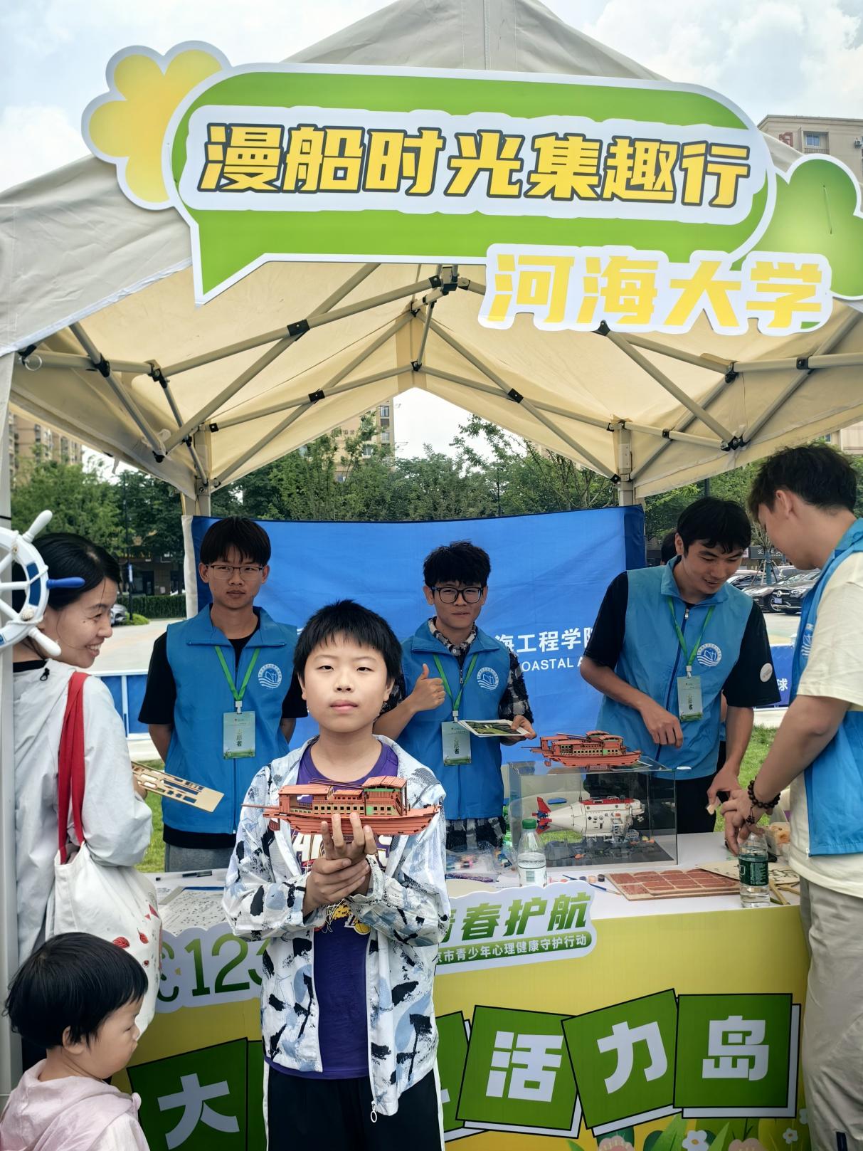 为营造关心关爱青少年身心健康及权益维护的良好氛围,在5月大学生心理健康主题日与中高考关键节点来临之际,开云电竞网港航学院受共青团南京市委邀请,于5月24日在雨花万象天地与众高校联合开展江苏省暨南京市“12355青春护航”青少年心理健康守护行动。本次活动整合心理健康、思想引领、专业科普等多方面资源,精心设计“模型探秘”“红船精神”“画出期许”三部分活动,引导青少年及市民在活动中开拓视野、释放压力,在参观赏析和沉浸体验结合中深刻体会心理健康在当代学习生活中的重要性。