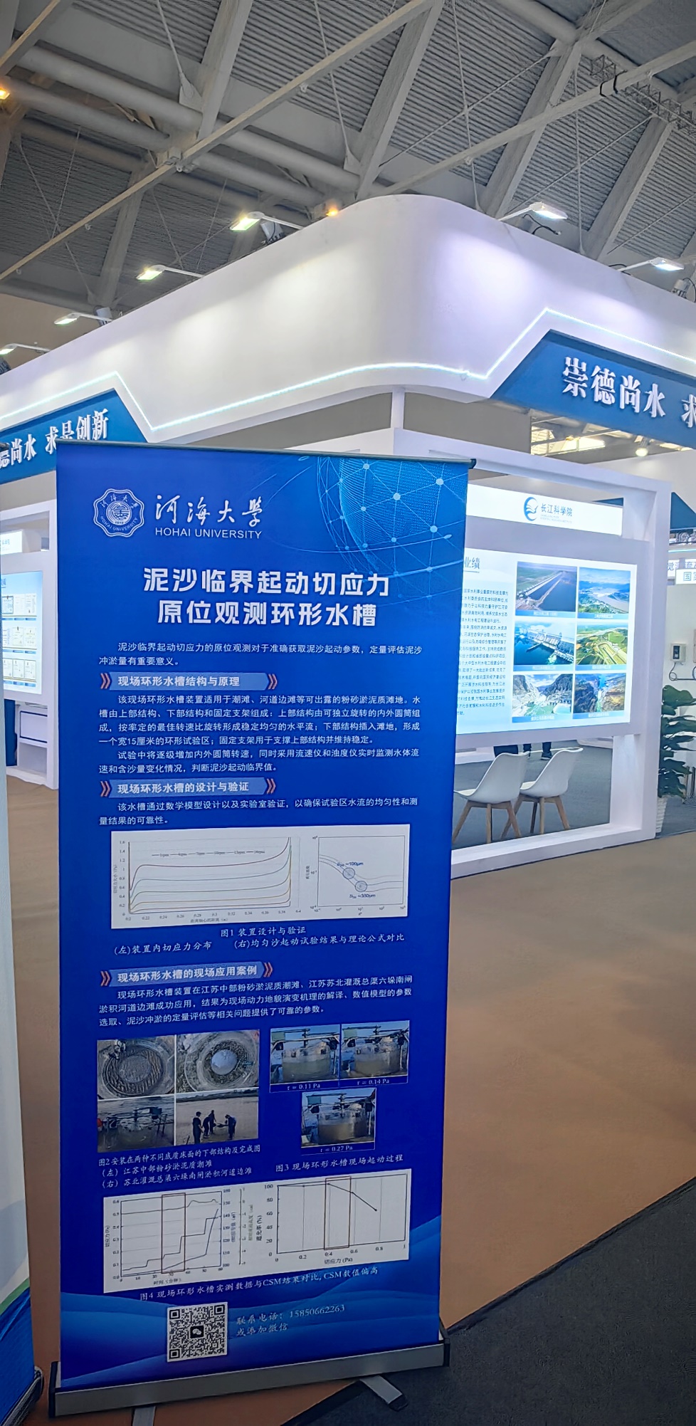 我院海岸灾害及防护教育部重点实验室孔俊教授、江苏辐射沙脊群潮滩湿地生态系统教育部野外科学观测研究站李欢副教授应邀参会。我院龚政教授团队自主研发的“泥沙临界起动切应力原位观测环形水槽”亮相展览,充分展示了我院在野外观测技术研发方面的创新成果。