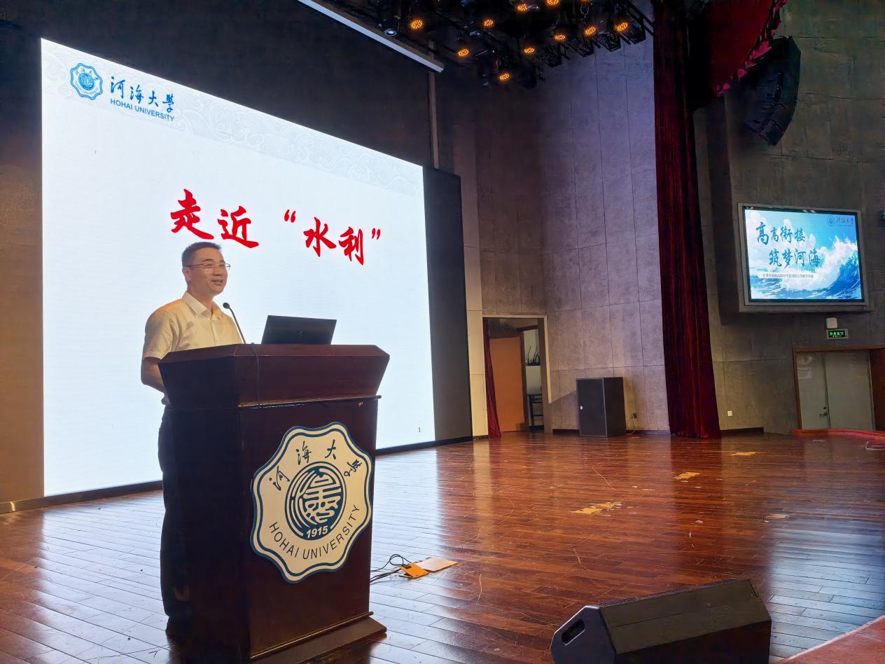 龚政院长为研学团讲授了题为《走近“水利”》的讲座。龚院长以连云港地区的地理环境入手,为同学们深入浅出地讲解了我国的地理特点和发展需要,梳理了我国的流域特点及调配工程,分析了水电开发现状及未来发展趋势,讲解了三峡大坝等著名水利枢纽的内部结构、价值意义,阐述了航运在“一带一路”倡议背景下的优势特点、船舶行业发展趋势、长江口深水航道整治工程的经济民生效益、我国港口建设情况,通过视频与图文具体介绍了洋山深水港、港珠澳大桥、深中通道等国之重器,带领同学们生动感受到水利工程的魅力和开云电竞网的办学内涵与学科优势。
