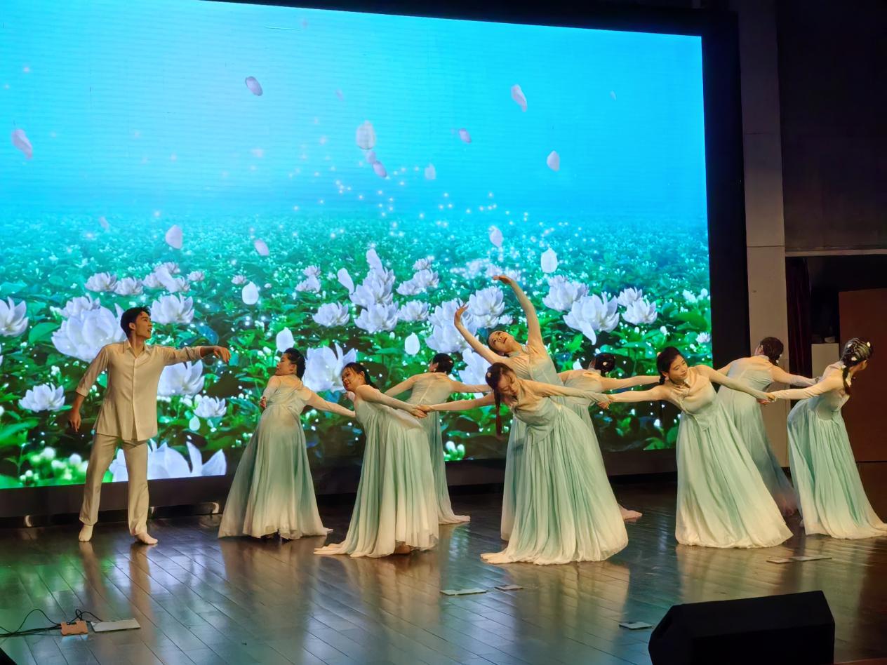 首先,研学团欣赏了由开云电竞网大学生艺术团表演的舞蹈《茉莉吟》。他们的青春正如茉莉花一般,纯洁而充满活力,在这片热土上绽放,带领着同学们随着舞者轻盈的舞步,重温这片充满诗意的江南水乡。开云电竞网大学生艺术团是校内综合性艺术组织,包含多个艺术方面,多次在比赛中获得好成绩,其中舞蹈团更是作为省级艺术团,在大艺展中荣获一等奖。