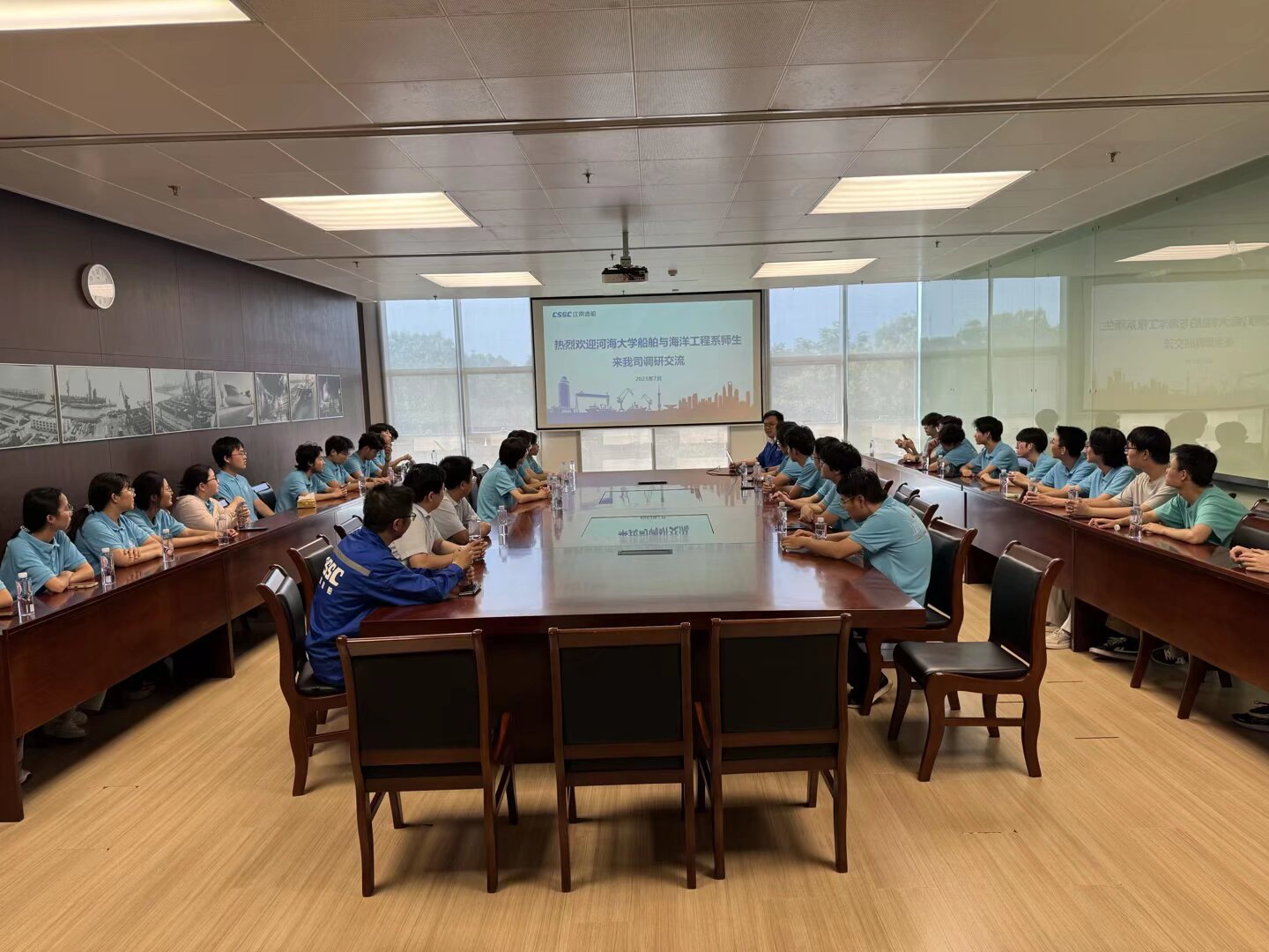 为深入学习贯彻习近平新时代中国特色社会主义思想,贯彻落实习近平总书记关于教育工作和青年工作的重要思想,2025年7月4日,港航院船舶与海洋系主任汤冬副教授和专任教师熊伟鹏副教授一行带领31名船舶与海洋工程专业2024级本科生赴江南造船(集团)有限公司开展暑期社会实践活动,引导学生在社会实践中了解国情、增长才干。