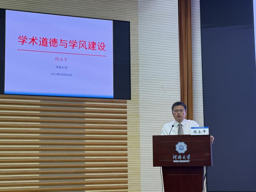 学院副院长陈永平教授围绕学院基本情况介绍与学术道德两个专题展开讲座。他向新生依次介绍了学院的发展历程、学科研究、基本情况、培养模式以及就业前景等,他着重强调,研究生生涯不只是知识储备的深化过程,更是创新思维与实践能力的塑造阶段。为助力学生成长,学院将提供多样的学术资源、顶尖的科研平台和国际化交流契机,鼓励新生积极涉足未知领域、勇于直面科研难题,不断提升综合素养与创新水平。