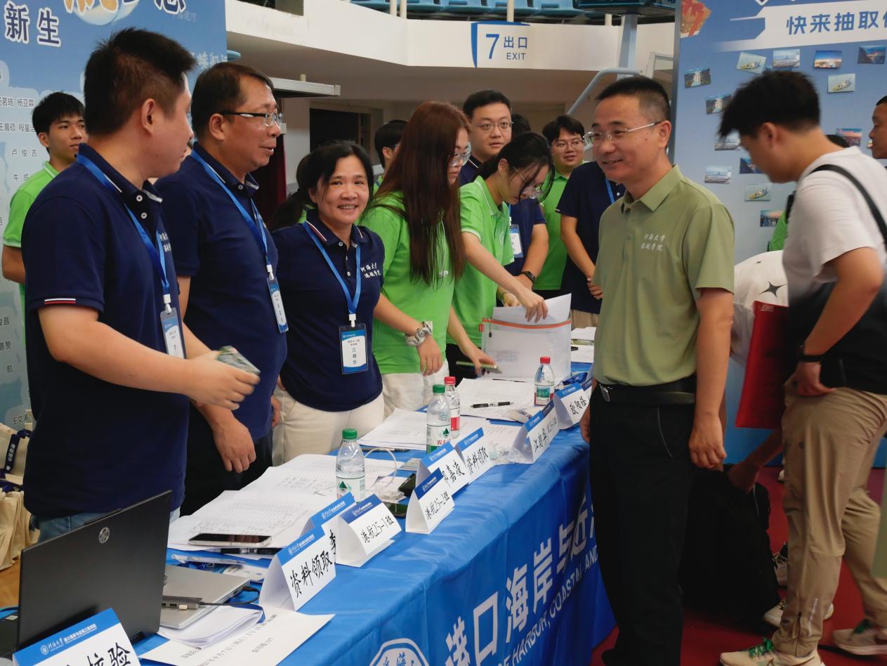 迎新现场欢声笑语,学校党委书记杨桂山、校长郑金海、党委副书记、副校长陆国宾、副校长沈扬与学校相关职能部门负责人先后来到港航院报到点,关心报到实况,慰问班导师、志愿者及相关工作人员,并与新生亲切交流。