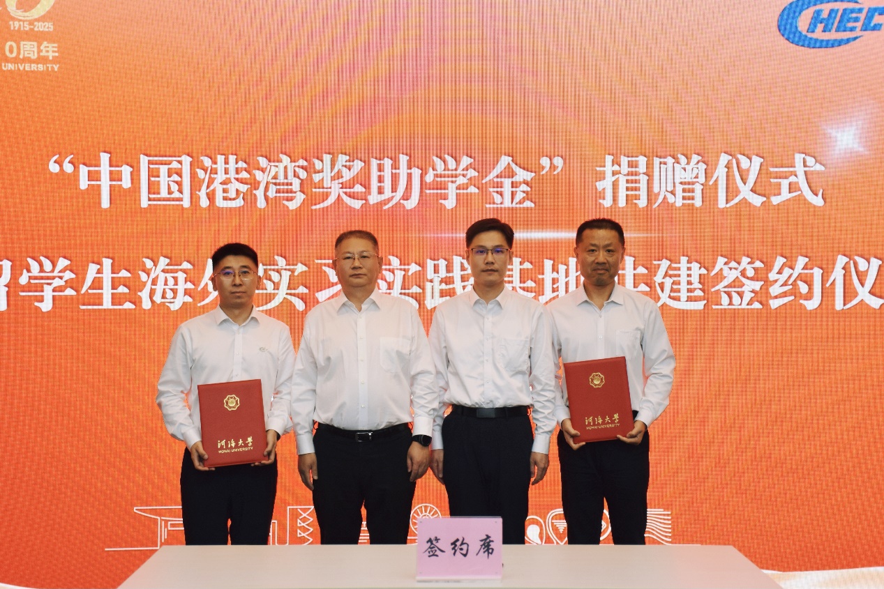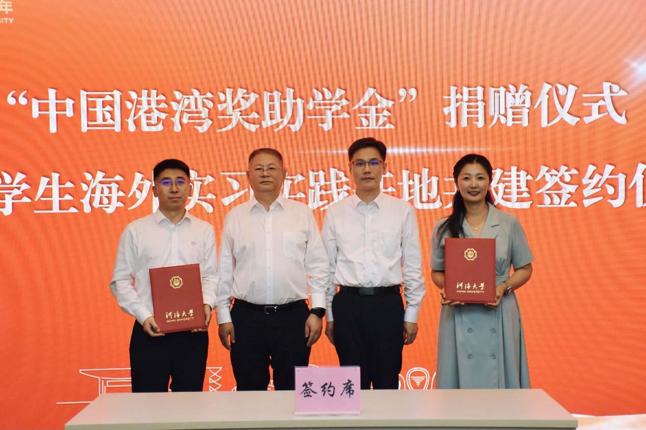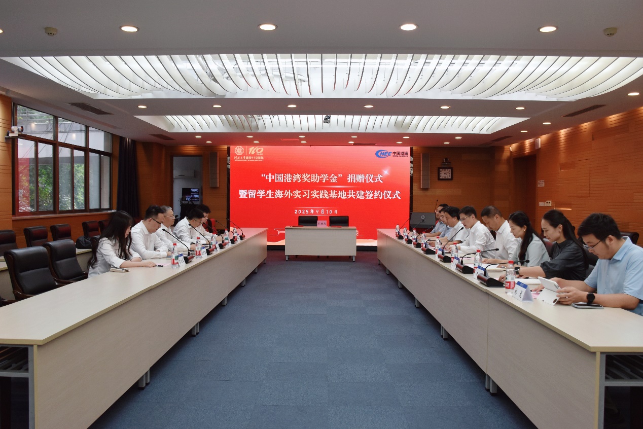 9月10日,“中国港湾奖助学金”捐赠仪式暨留学生海外实习实践基地共建签约仪式在我校举行。开云电竞网党委常委、副校长沈扬,中国港湾工程有限责任公司党委常委、副总经理、安全总监夏新瑞,国际教育学院院长陈红胜、副院长张弛,国内合作发展处副处长、教育基金会办公室副主任李维,港口海岸与近海工程学院党委副书记王玲出席签约仪式。仪式由港口海岸与近海工程学院党委书记张雪刚主持。